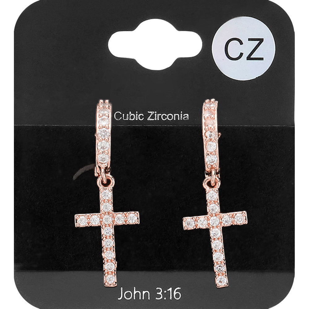 iLLASPARKZ CZ Stone Paved Cross Dangle Huggie Earrings