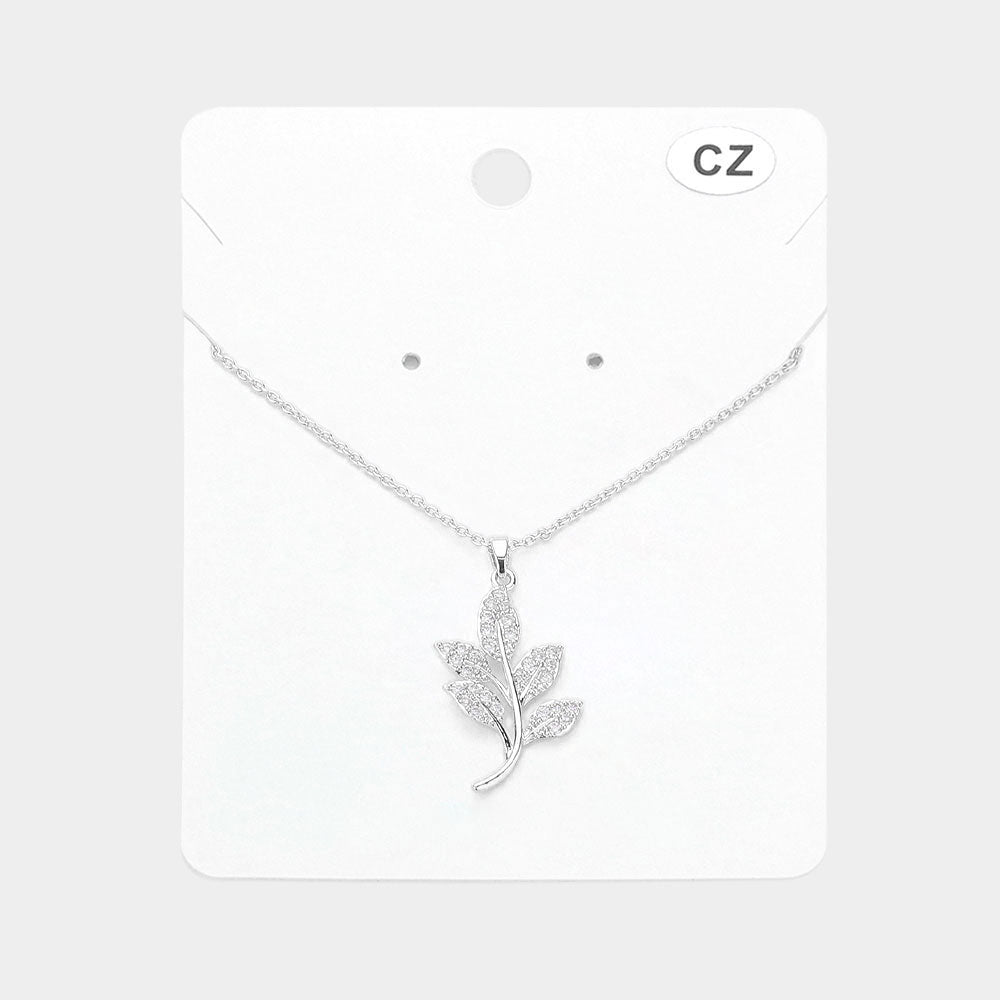 iLLASPARKZ CZ Stone Paved Leaf Pendant Necklace