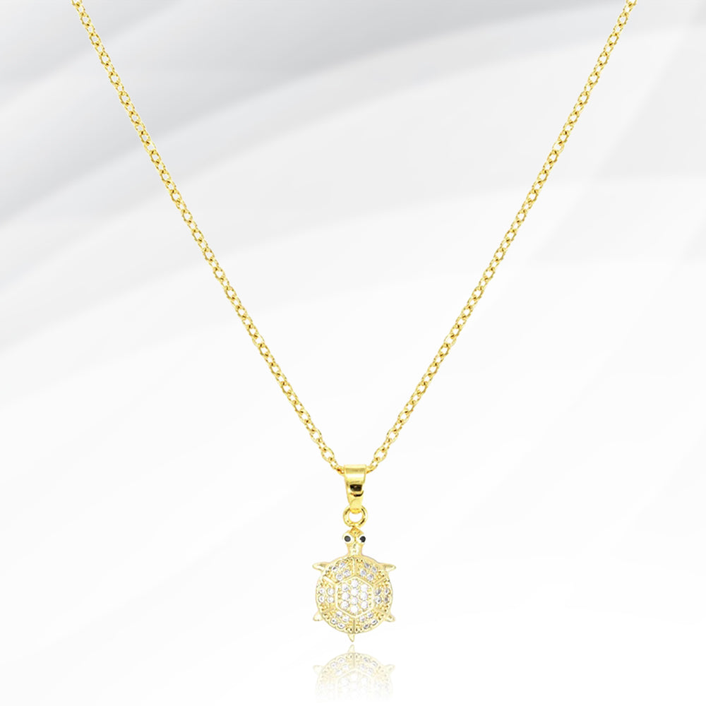 iLLASPARKZ CZ Stone Paved Turtle Pendant Stainless Steel Necklace