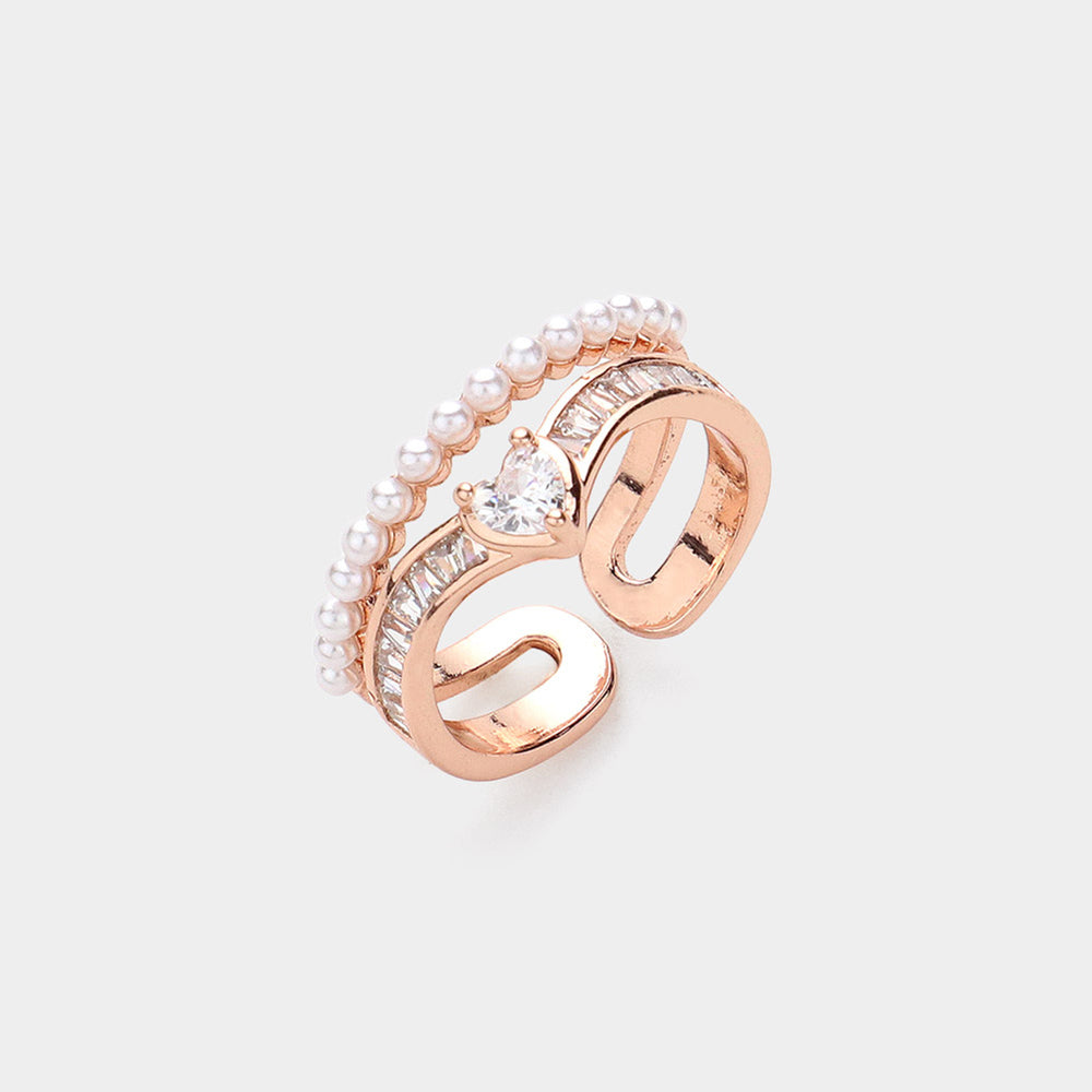 iLLASPARKZ Heart Stone Pointed Pearl Paved Layered Ring