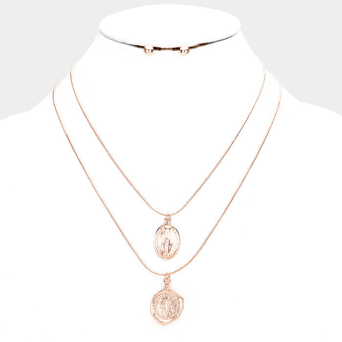 iLLASPARKZ Layered Saint Mary Pendants Bib Necklace