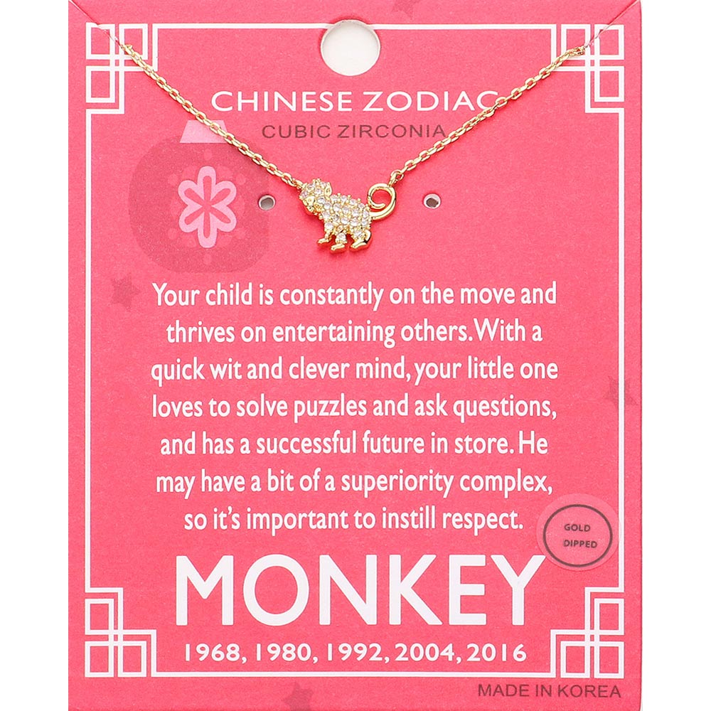 iLLASPARKZ Lunar 12 Zodiac Gold Dipped CZ Monkey Pendant Necklace