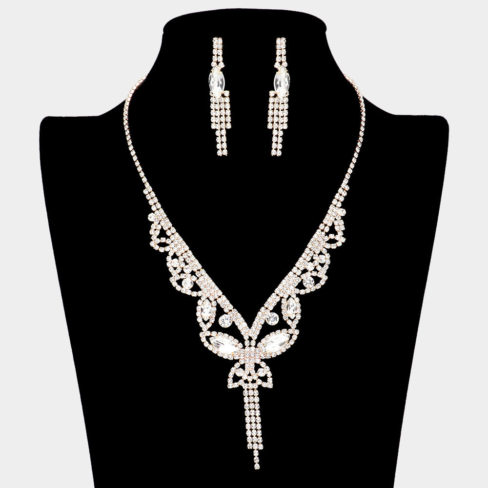 iLLASPARKZ Marquise Round Stone Butterfly Rhinestone Necklace