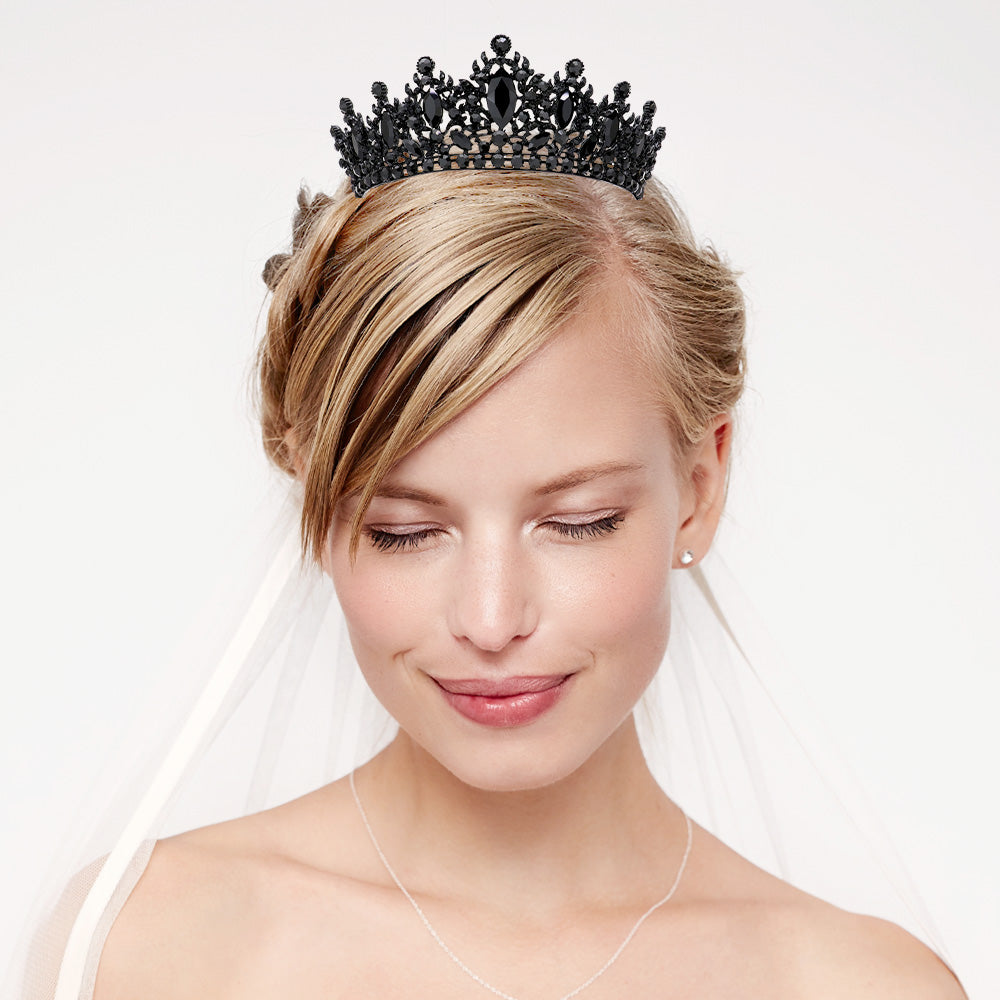 iLLASPARKZ Marquise Stone Accented Leaf Detail Crown Queen Tiara