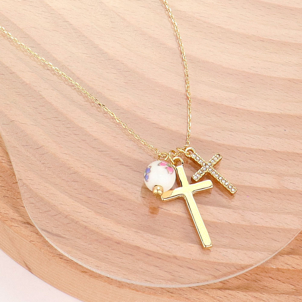 iLLASPARKZ Metal Stone Paved Cross Porcelain Ball Pendant Necklace