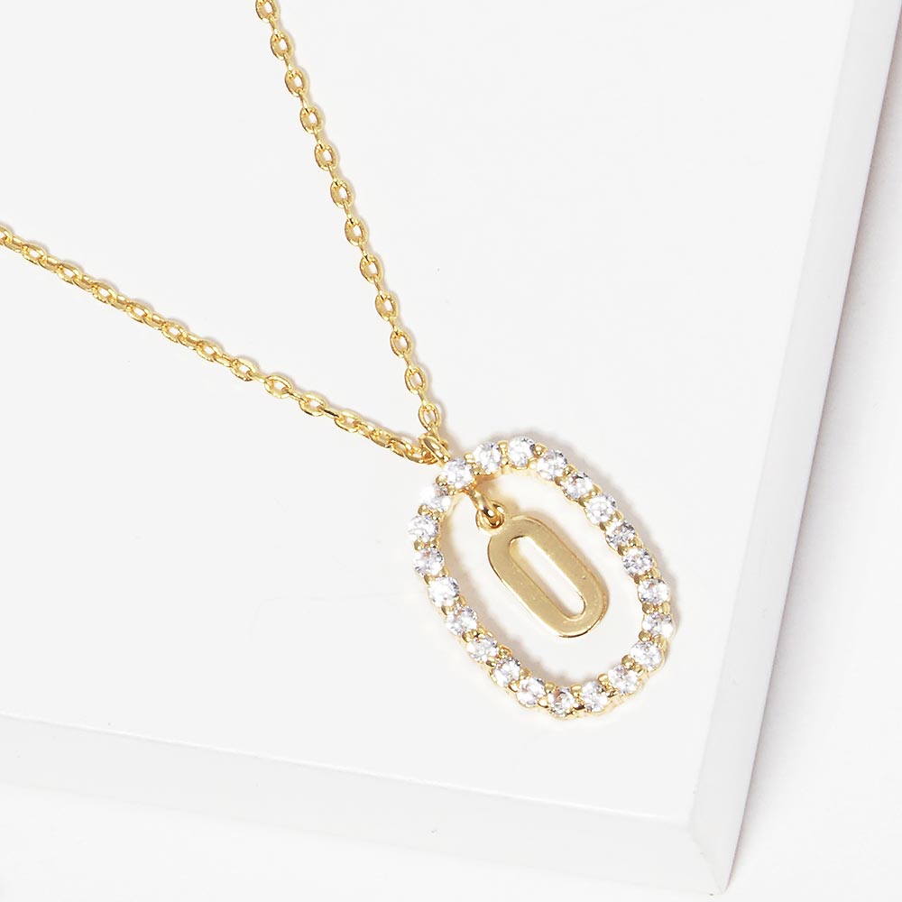 iLLASPARKZ -O- Gold Dipped Metal Monogram Rhinestone Oval Link Pendant Necklace