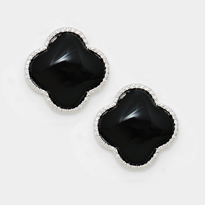 iLLASPARKZ Onyx quatrefoil clover stud earrings