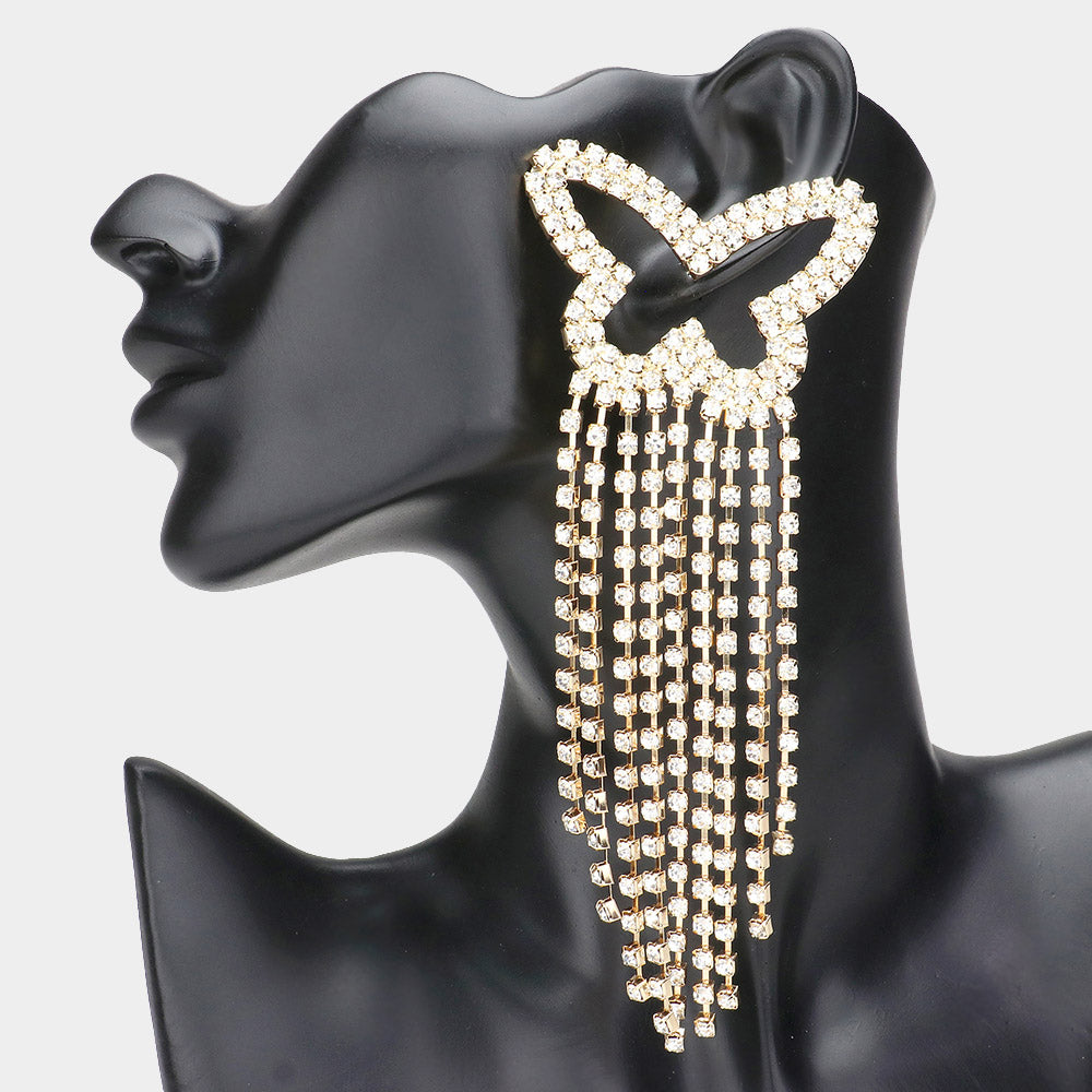 iLLASPARKZ Oversized Rhinestone Paved Butterfly Fringe Earrings