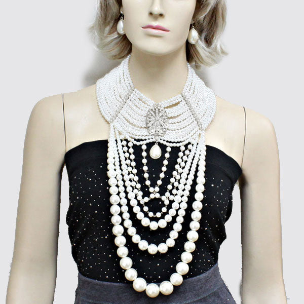 • Oversized Teardrop Pearl Bib Necklace