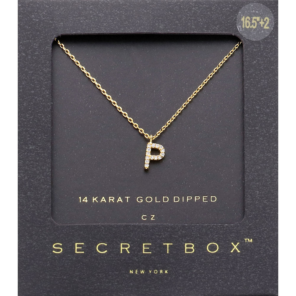 iLLASPARKZ -P- Secret Box _ 14K Gold Dipped CZ Monogram Pendant Necklace