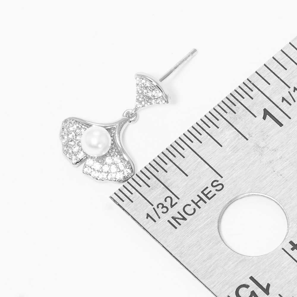 iLLASPARKZ Pearl Accented CZ White Gold Dipped Ginkgo Leaf Dangle Earrings