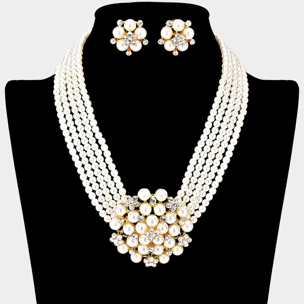 iLLASPARKZ Pearl Cluster Flower Necklace Clip on Earring set