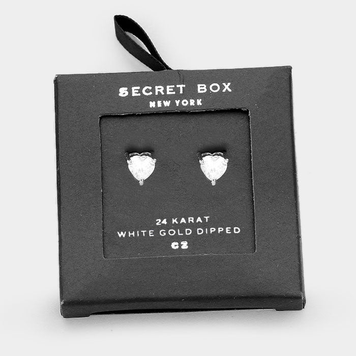 iLLASPARKZ SECRET BOX_24k White Gold Dipped Heart Cubic Zirconia Earrings