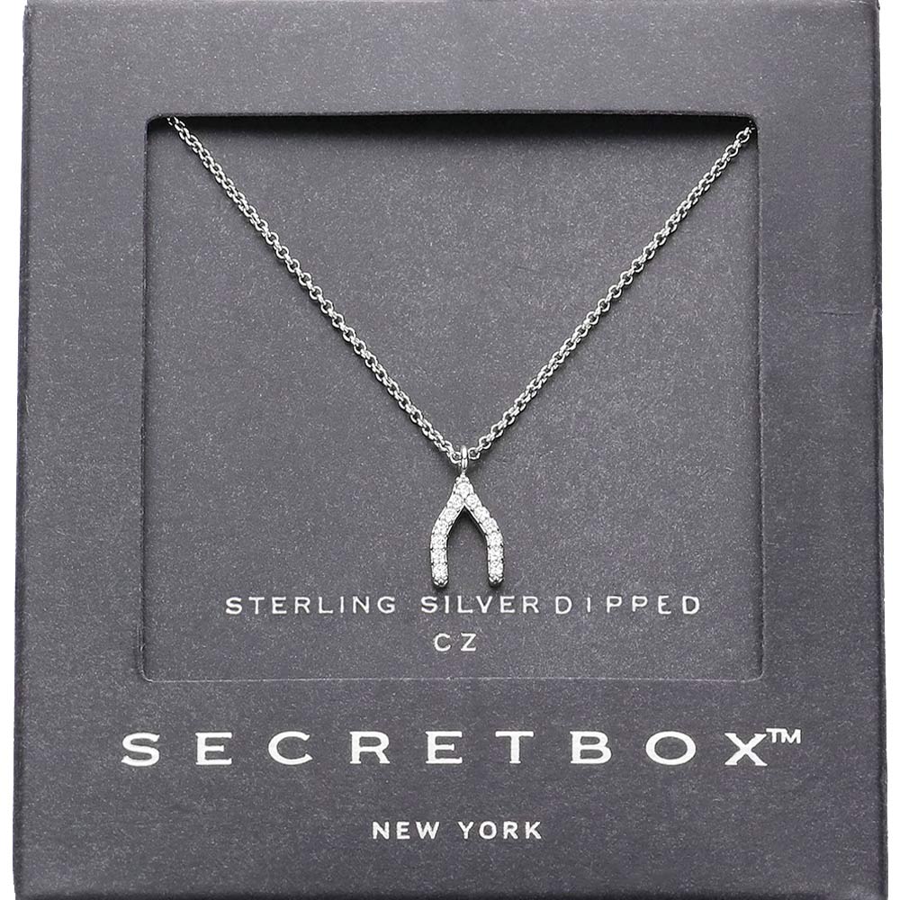 iLLASPARKZ SECRET BOX_Sterling Silver Dipped CZ Stone Paved Wishbone Pendant Necklace