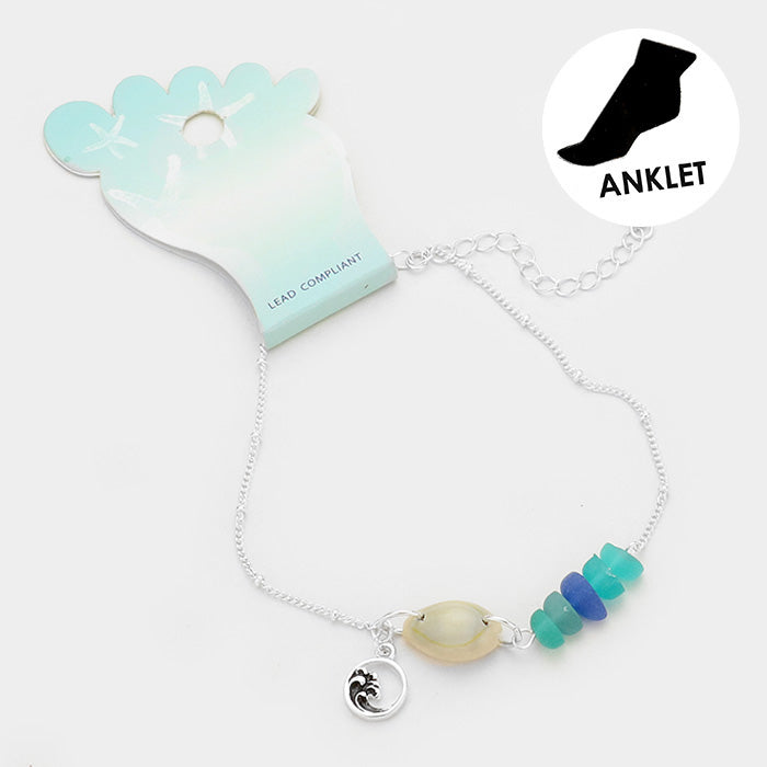 iLLASPARKZ Shell Metal Wave Charm Sea Glass Anklet