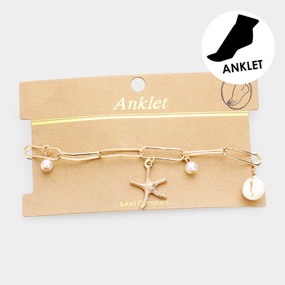 iLLASPARKZ Starfish Puka Shell Pearl Chain Anklet