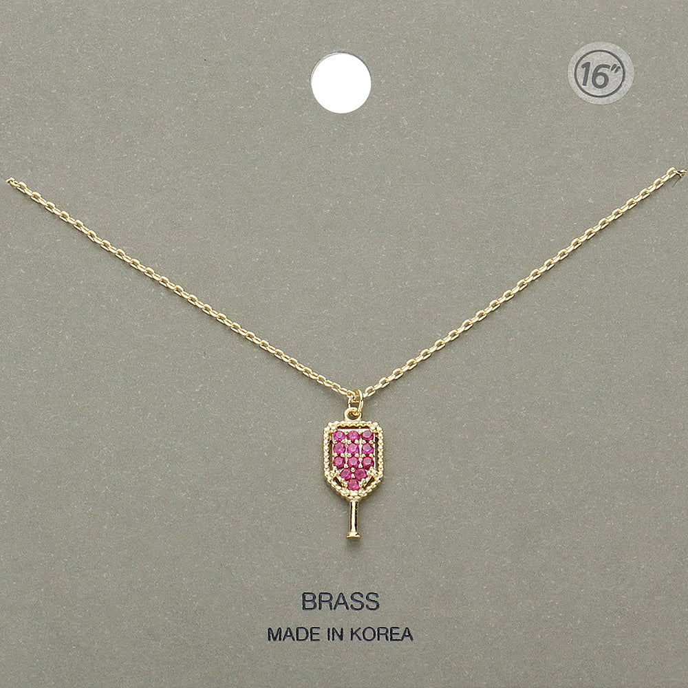 iLLASPARKZ Stone Paved Brass Metal Pickleball Paddle Pendant Necklace