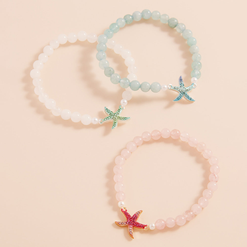 iLLASPARKZ Stone Paved Colored Metal Starfish Faceted Beaded Stretch Bracelet