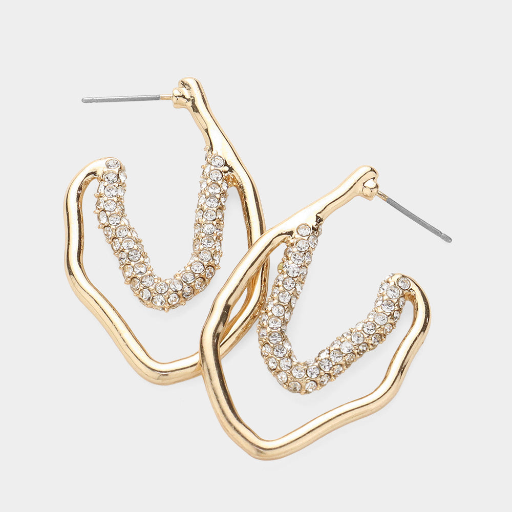 iLLASPARKZ Stone Paved Pointed Abstract Metal Wire Hoop Earrings