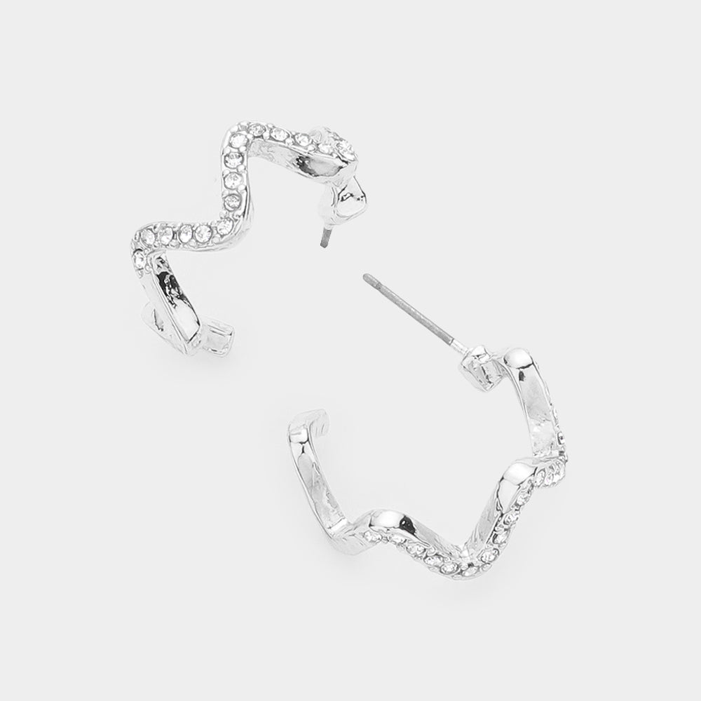 iLLASPARKZ Stone Paved Wavy Metal Hoop Earrings