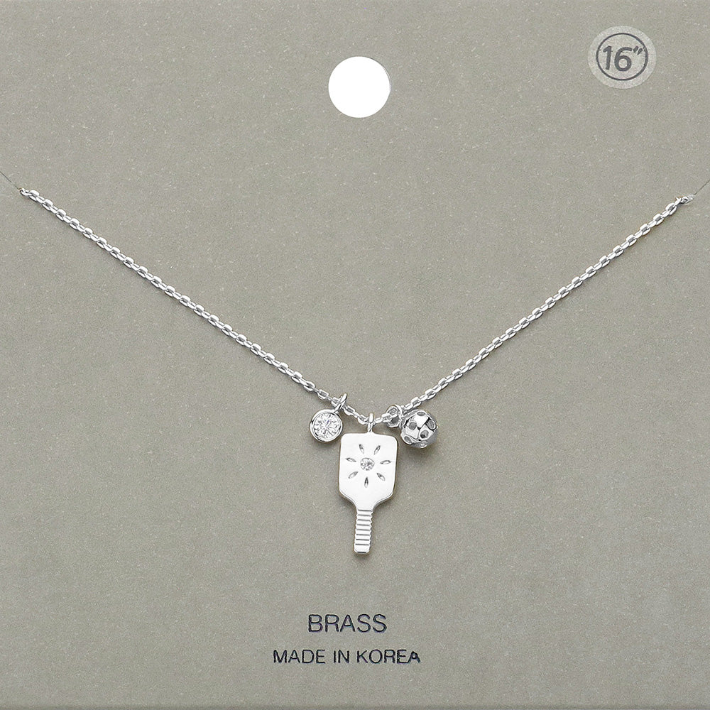 iLLASPARKZ Stone Pointed Metal Pickleball Paddle Pendant Necklace