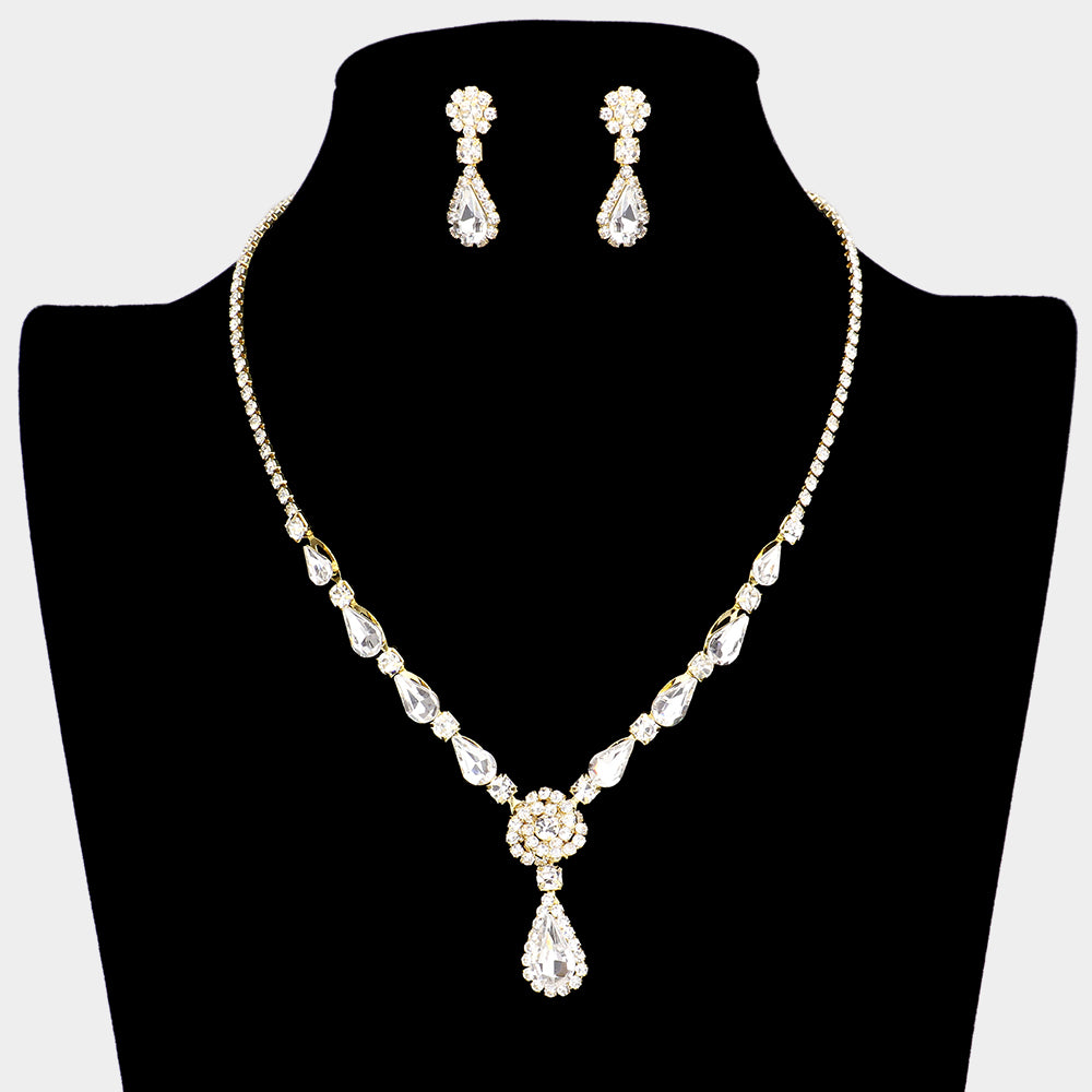 iLLASPARKZ Teardrop Stone Cluster Rhinestone Necklace