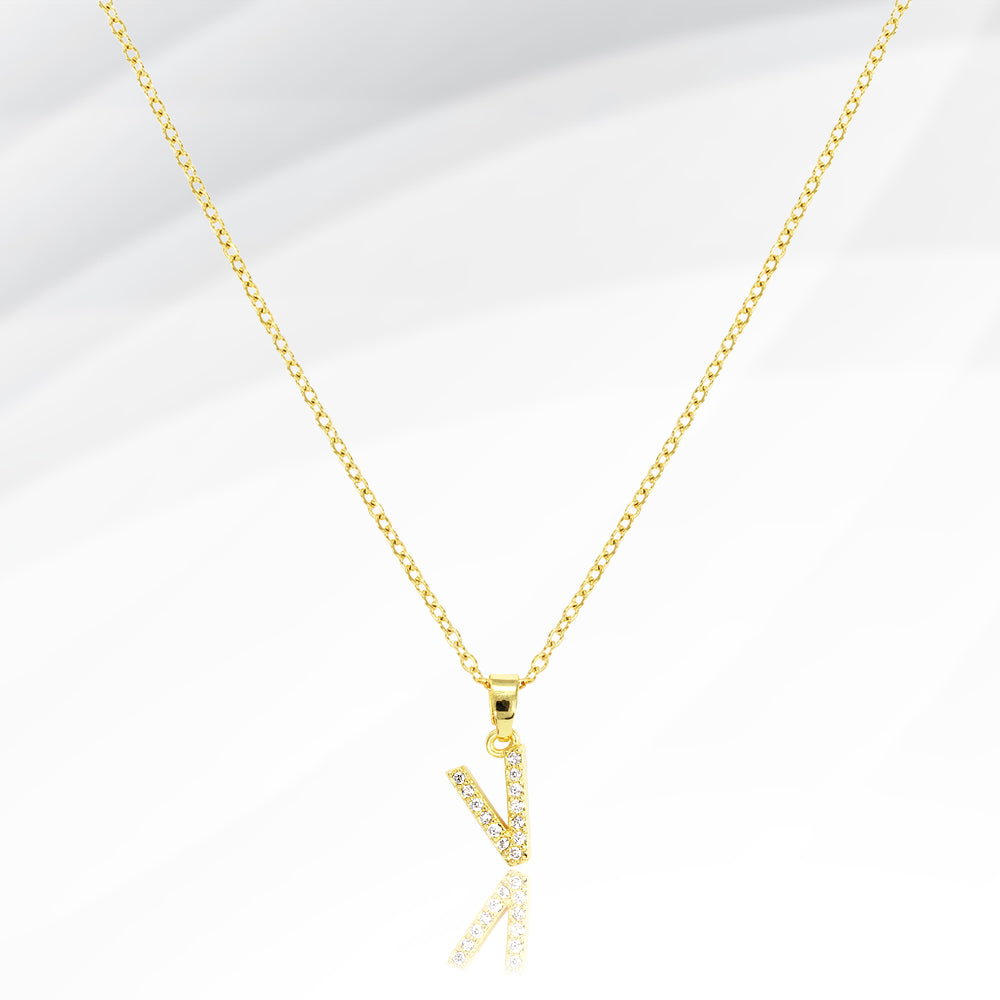 iLLASPARKZ -V- Stainless Steel CZ Stone Paved Monogram Pendant Necklace