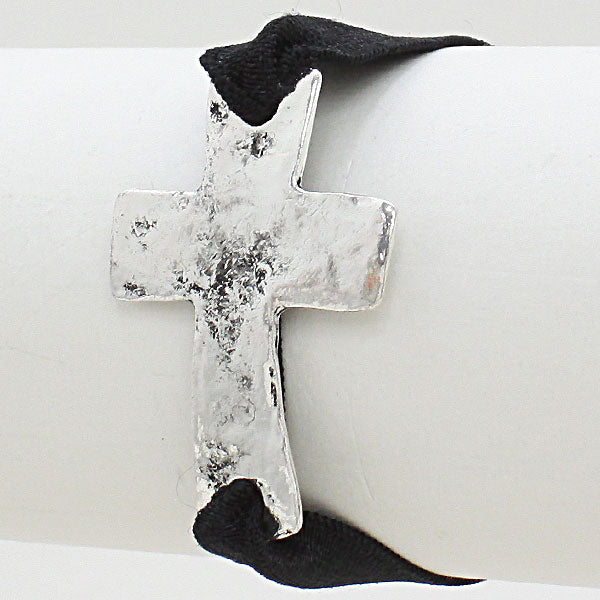 • Vintage Cross Fabric Tie Stretch Bracelet