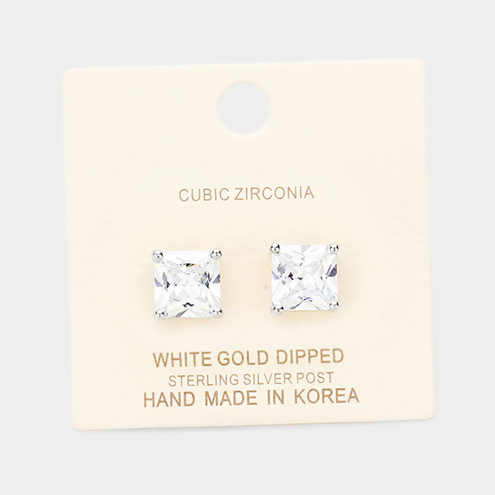 iLLASPARKZ White Gold Dipped 9mm Cubic Zirconia Square Stud Earrings