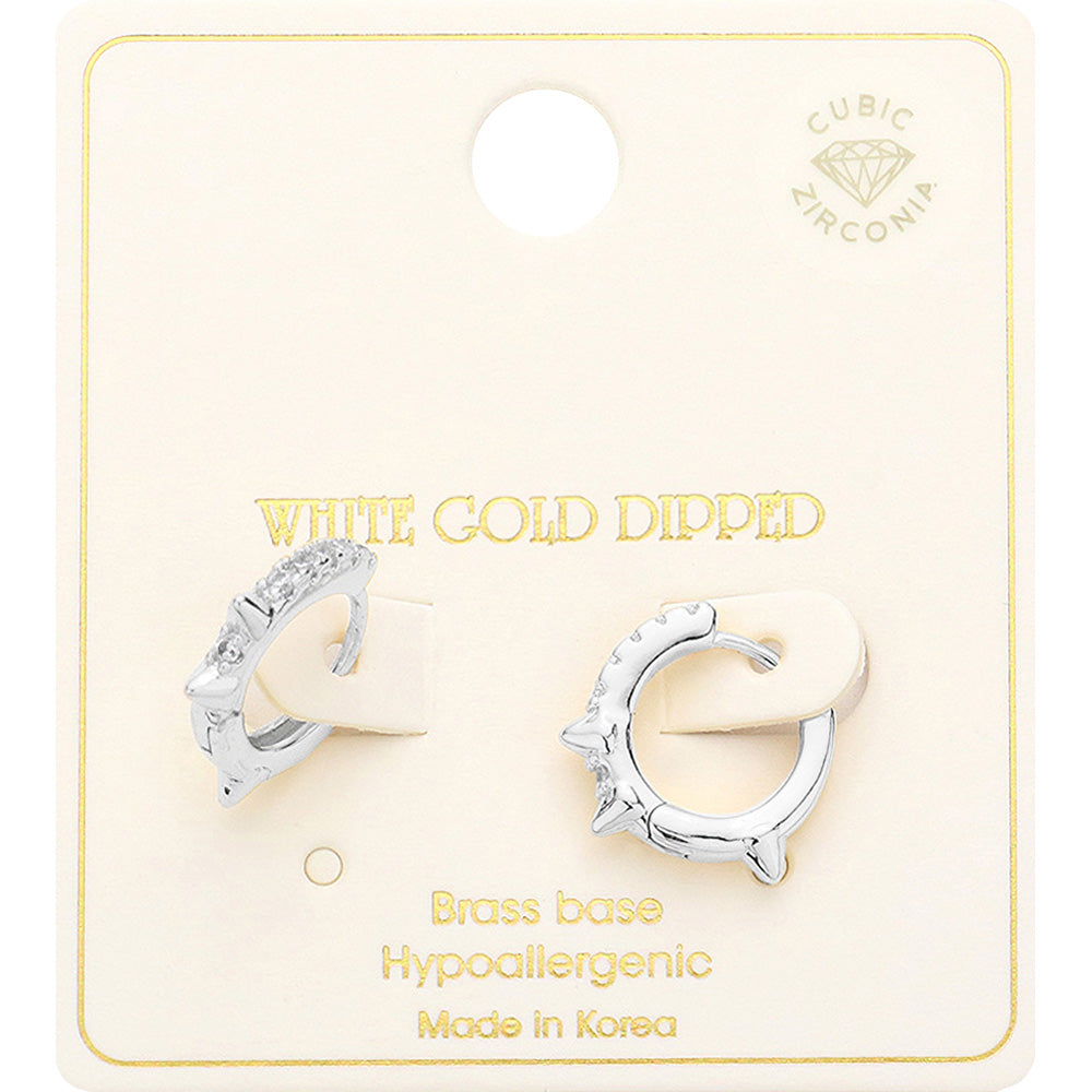 iLLASPARKZ White Gold Dipped Brass Metal CZ Huggie Hoop Earrings