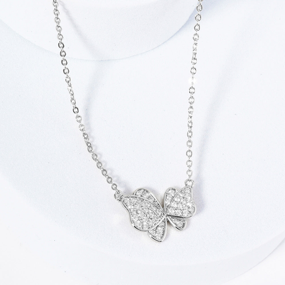 iLLASPARKZ White Gold Dipped CZ Stone Paved Butterfly Pendant Necklace