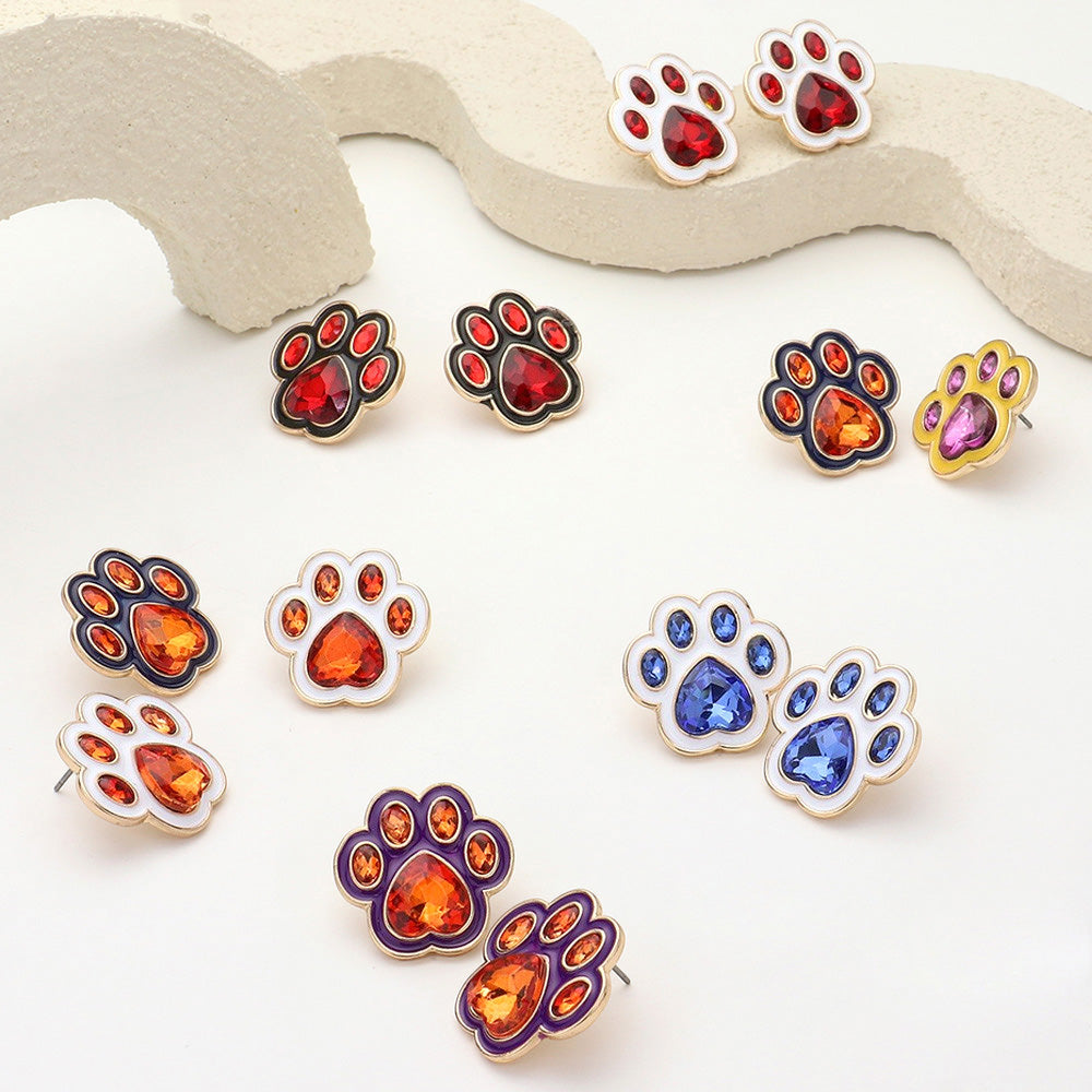 iLLASPARKZ Enamel Stone Game Day Paw Stud Earrings