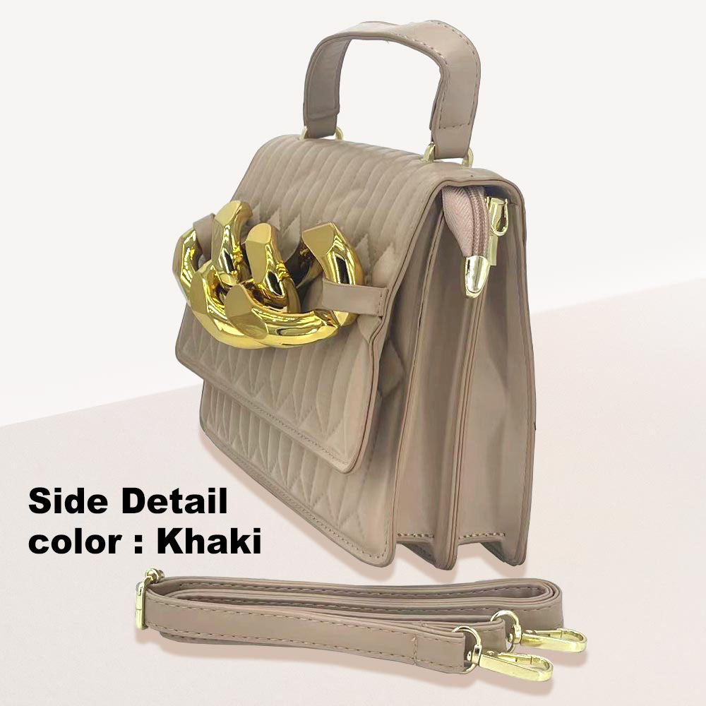 iLLASPARKZ Chunky Metal Trim Accented Faux Leather Top Handle Crossbody Bag