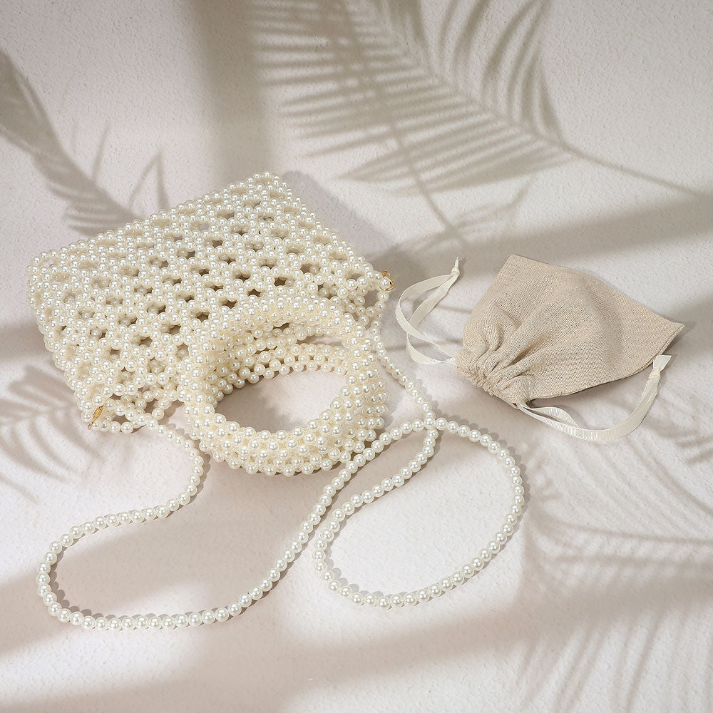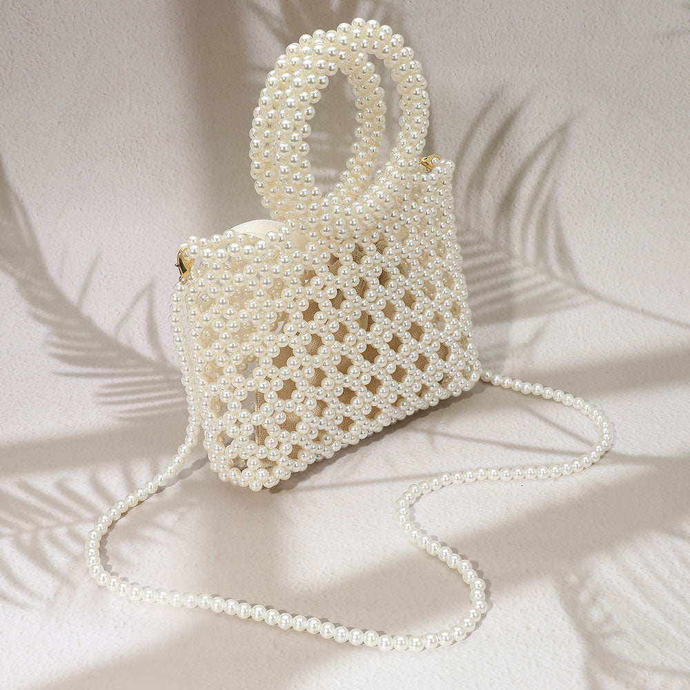 iLLASPARKZ Elegant Pearl Beaded Round Handle Lattice Handbag / Crossbody Bag