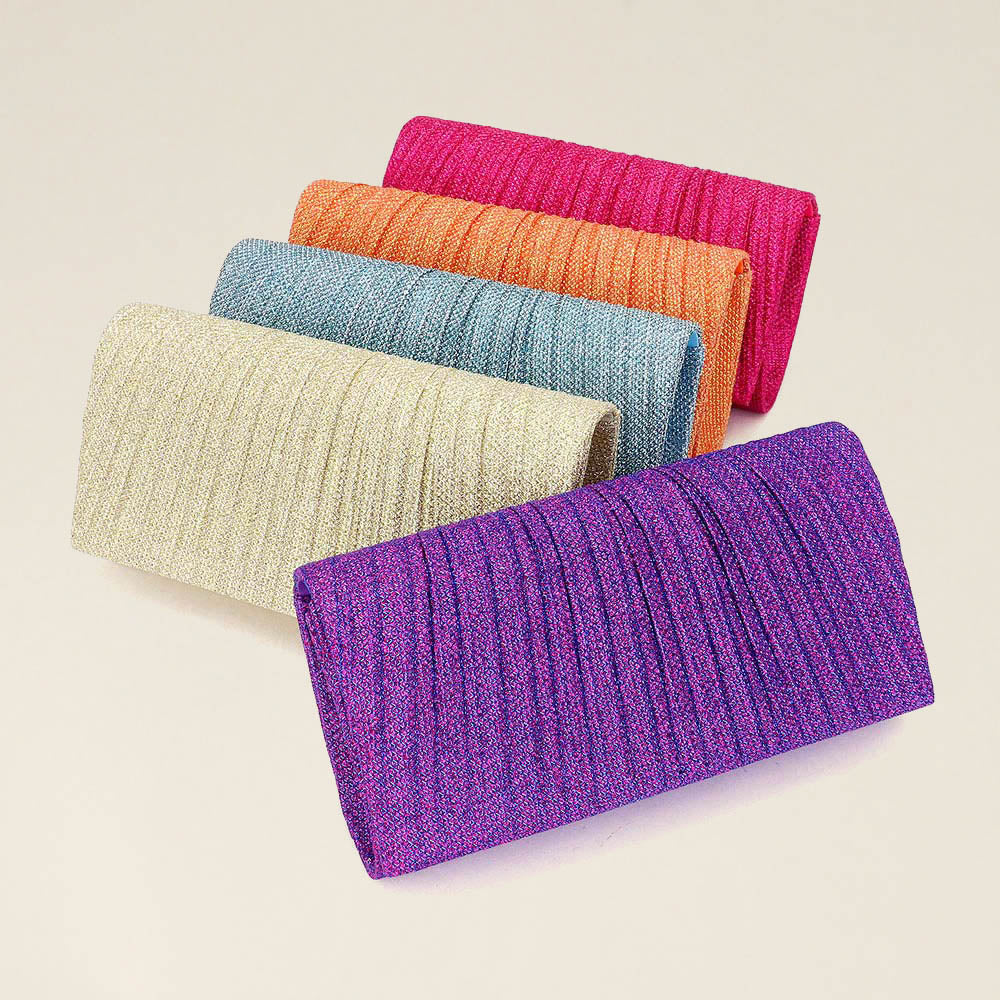 A modern pleated evening clutch designed to complement any elegant ensemble. With a sleek silhouette and practical interior, it’s perfect for special occasions, weddings, or parties, offering a blend of style and convenience for your essentials.