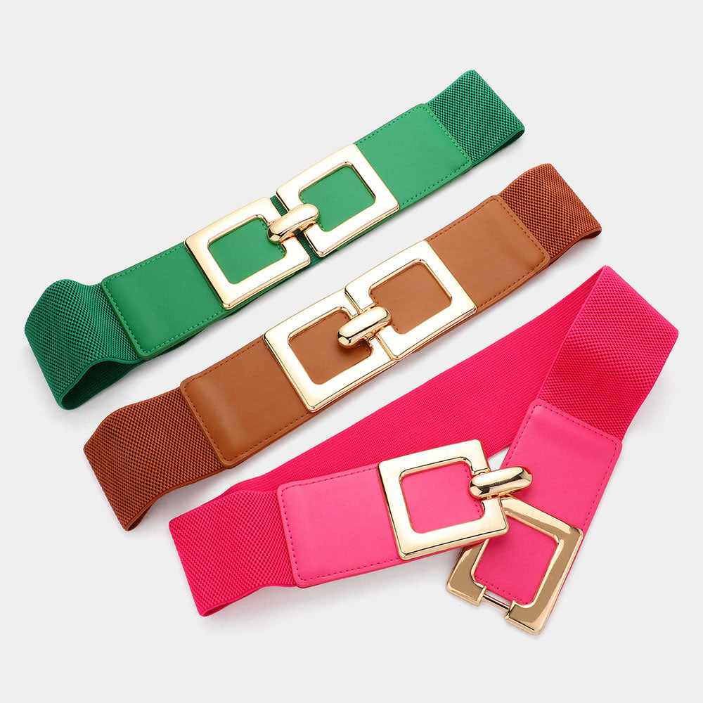 iLLASPARKZ Double Metal Square Hook Buckle Pointed Elastic Belt