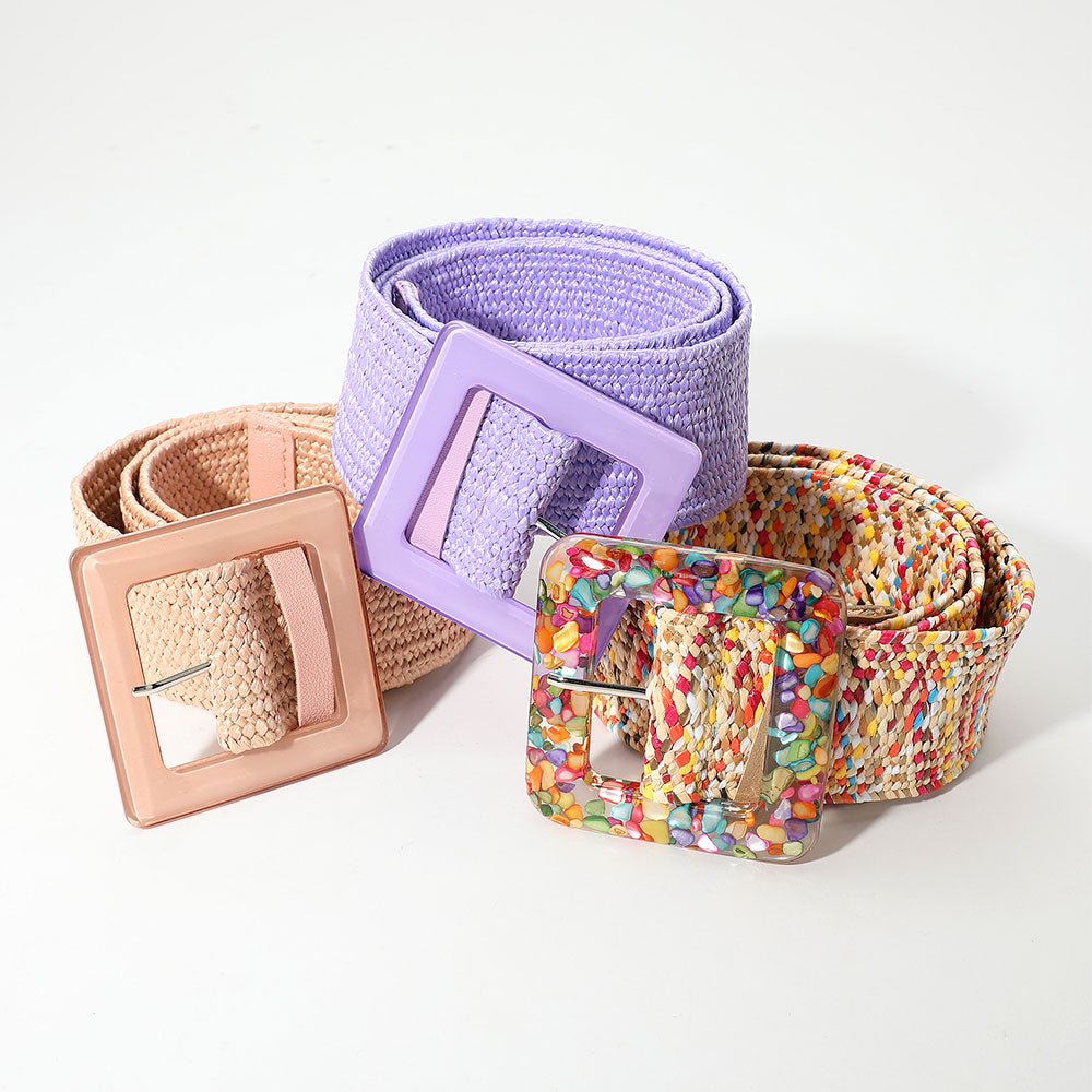 iLLASPARKZ Resin Square Buckle Accent Raffia Adjustable Belt