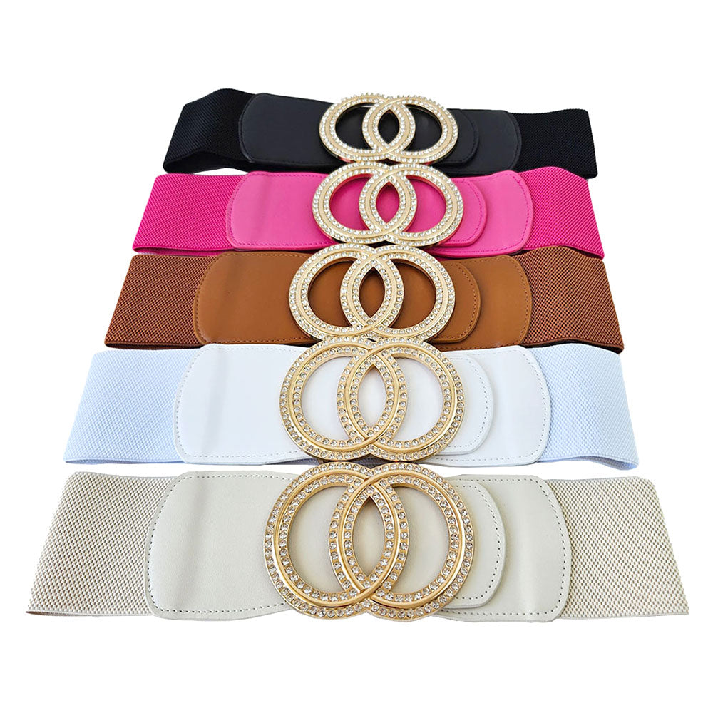iLLASPARKZ Stone Paved Double O Buckle Pointed Elastic Belt