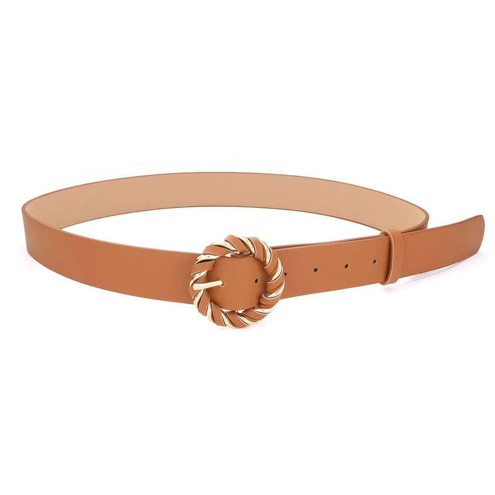 iLLASPARKZ Twisted Open Metal Circle Faux Leather Buckle Accented Belt