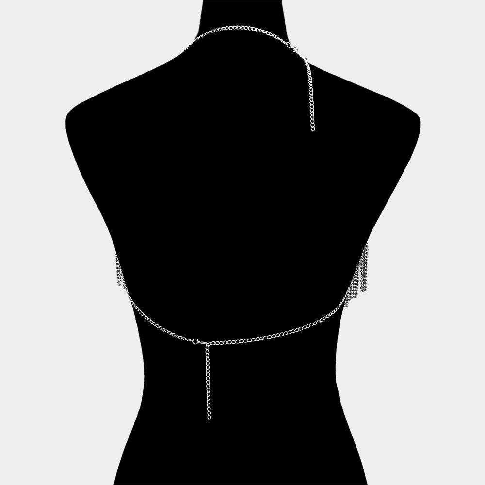 iLLASPARKZ Rhinestone Paved Fringe Body Chain Bra Necklace