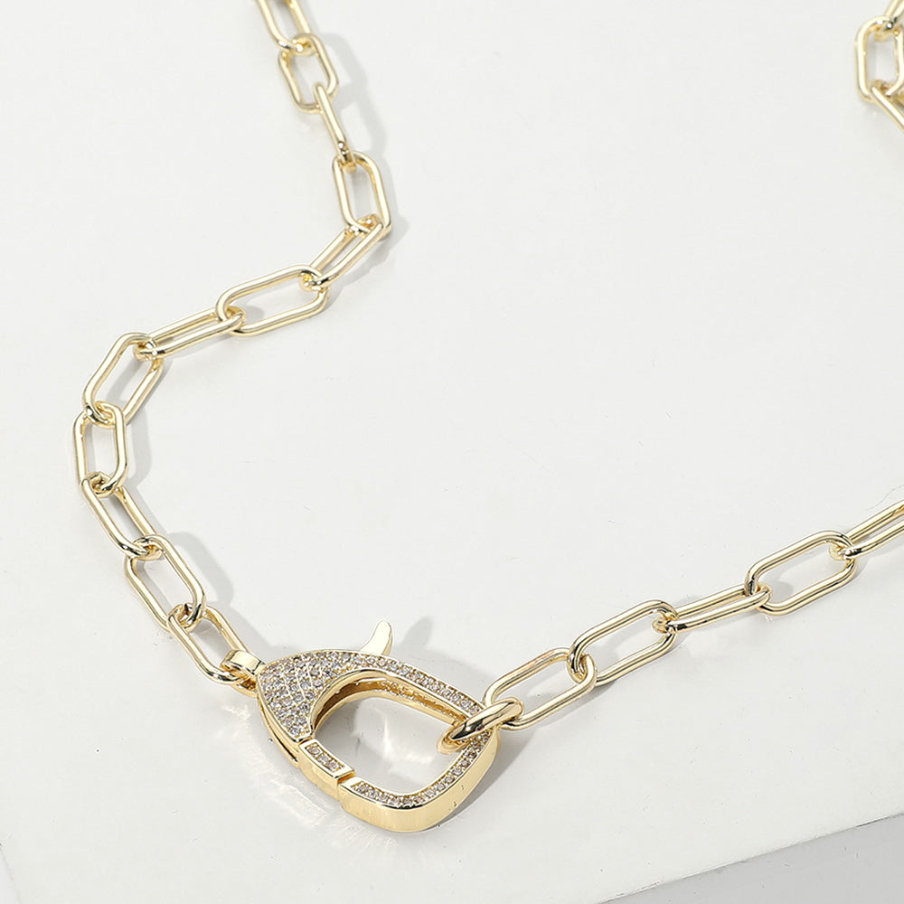 iLLASPARKZ 14K Gold Plated CZ Stone Paved Lobster Clasp Paperclip Chain Necklace