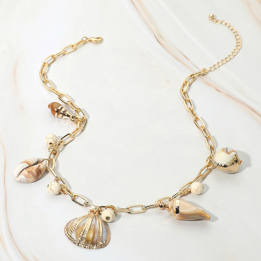Bring ocean vibes to your style with this seashell charm necklace featuring delicate shell pendants on a chic chain. Perfect for beach lovers and summer outfits, this playful accessory adds a touch of seaside elegance to casual and dressy looks alike.