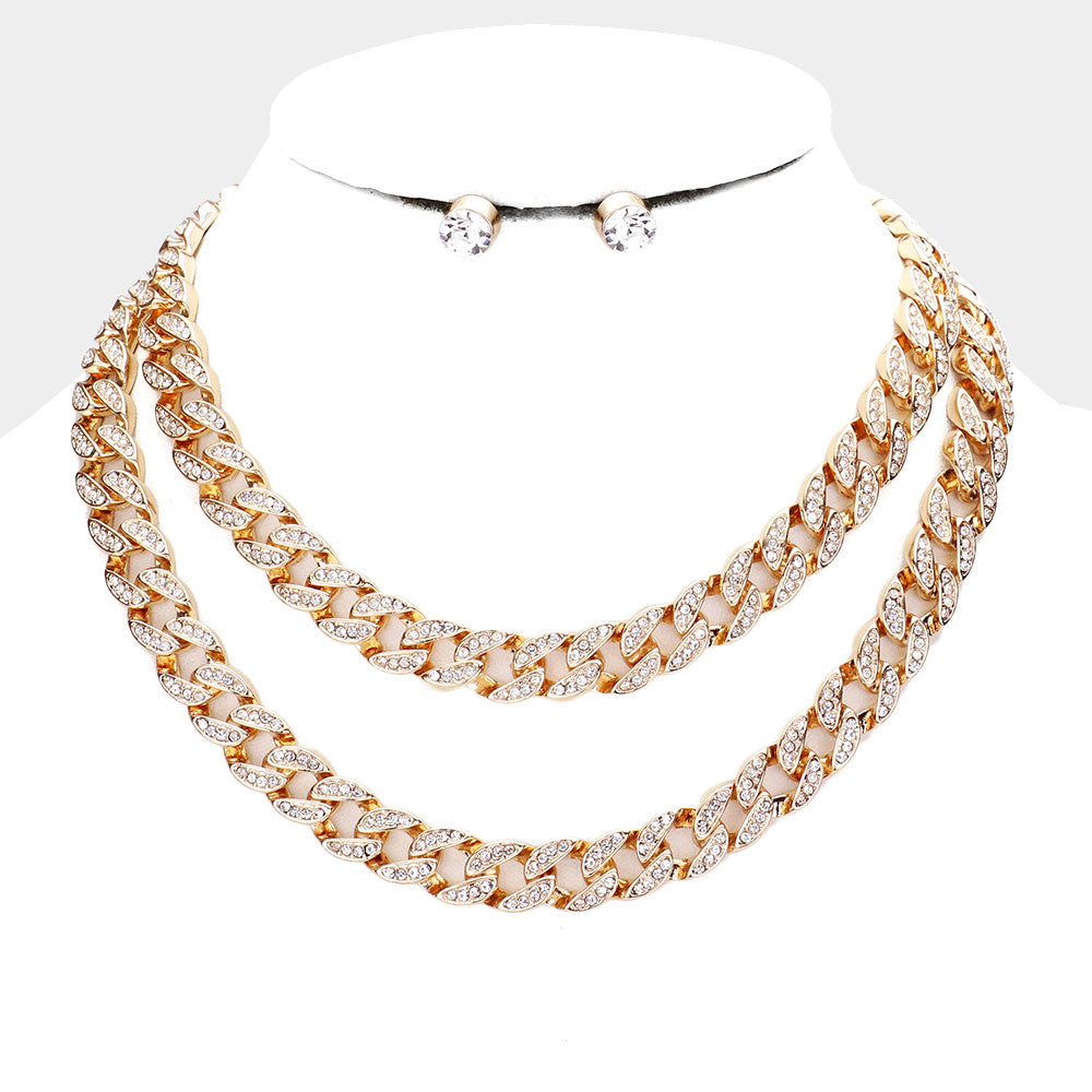 iLLASPARKZ 2PCS - Rhinestone Embellished Chain Necklaces