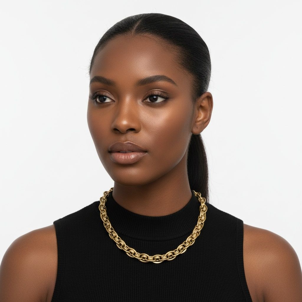 Women's Stainless Steel Chain Necklace. Premium 8mm Stainless Steel Handmade Oval Link Chain Necklace for Women Featuring 18k Gold IP Plating. Gold IP Plating is More Durable and Resistant to Wear and Tarnish than Traditional Gold Plating Methods, Making it Ideal for Items that are Worn Daily. Stainless Steel Plate Tag and Heavy Duty Lobster Clasp Closure. Hypoallergenic, Corrosion-Resistant, and Safe for Sensitive Skin.