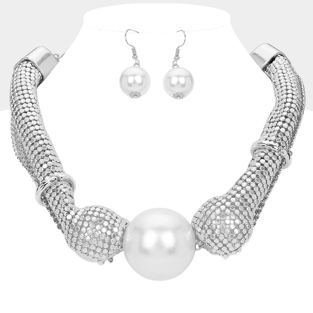 iLLASPARKZ Chunky Pearl Centered Mesh Wrapped Chain Necklace
