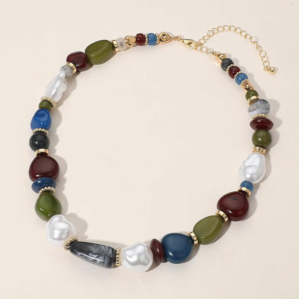 Vibrant beaded necklace with mixed shapes and an adjustable chain for a perfect fit. Ideal for layering or as a statement piece, this necklace adds a playful yet elegant touch to any outfit. Perfect for casual looks, parties, or gifting.
