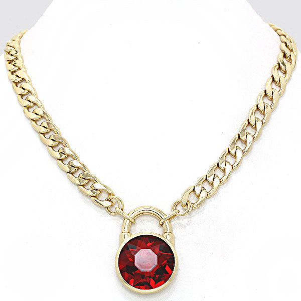 iLLASPARKZ Crystal Lock Pendant Curb Chain Necklace