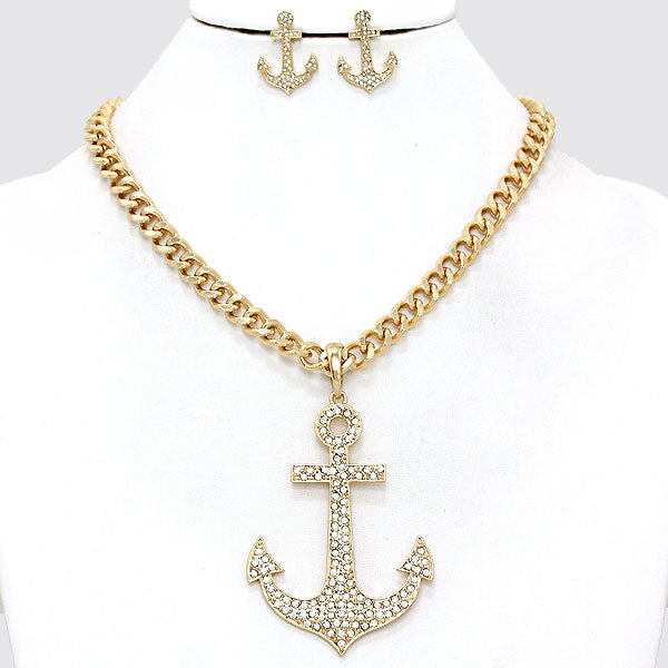iLLASPARKZ Crystal Pave Anchor Pendant Chain Necklace