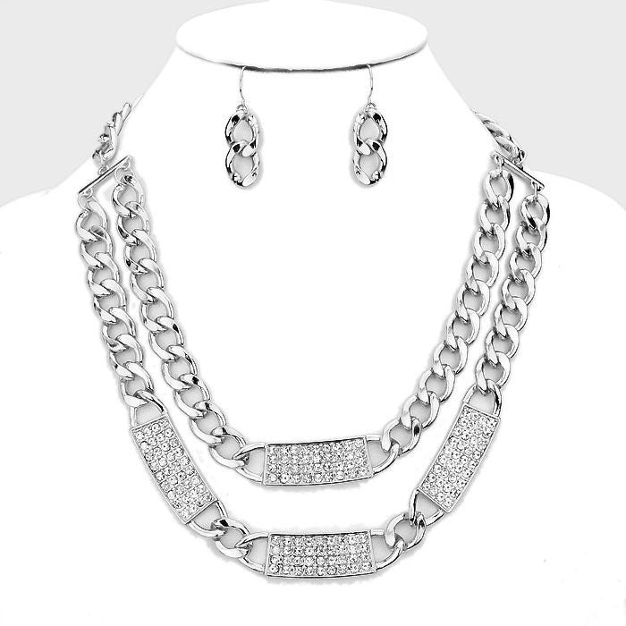 iLLASPARKZ Crystal Pave Bar Collar Chain Necklace