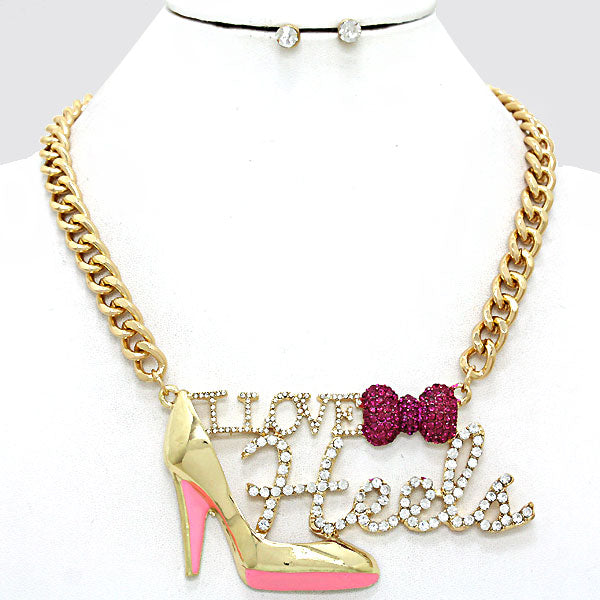 iLLASPARKZ Crystal Pave "I Love Heels" Chain Necklace